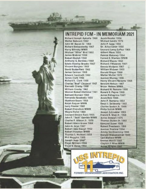 © Website created by FCM Neal O’Connor exclusively for the USS Intrepid Former Crew Members Association, Inc. and its members.